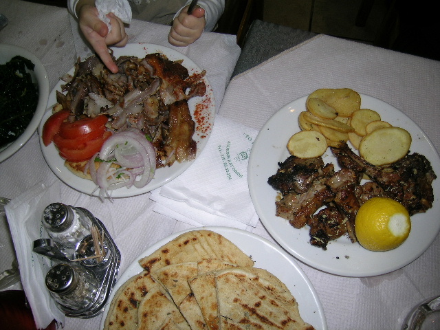 こちらも、ギリシャのファーストフードのおなじみ、スブラキです。