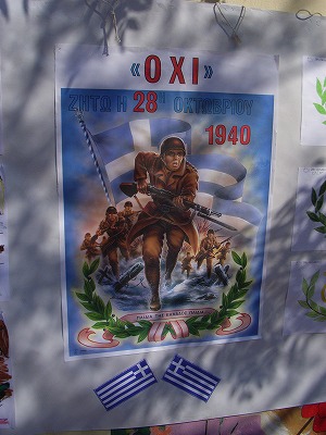 子供達は、幼稚園から、独立戦争に関する詩や歌、英雄について学びます。工作で、英雄の顔の額を作ったり、兵隊さんの帽子を作ったり、国旗を作ったり。歌の内容はかなり難解で、独立戦争時に、いかにギリシャ軍が勇敢に戦ったかを物語風に伝える歌、国旗を称える歌、愛国心を表す歌、戦争の悲惨さを歌った歌、など、様々です。幼稚園児が鼻歌まじりに歌っていると、ちょっと不気味ですが・・・自分の国の歴史を次世代に伝えていくというのは、大切なことだと思います。